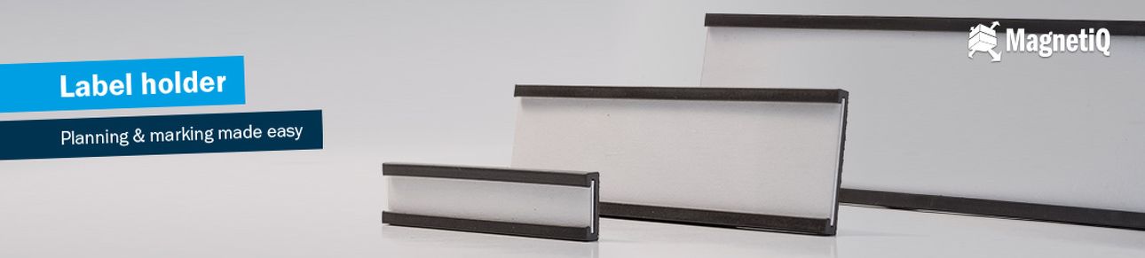 Label holders are the perfect solution for a variable lettering They offer space for labels of all types and keep them from dirt, dust as well as external influences. The label holders in MagnetiQ magnet shop can be easily assembled and offer a full surface magnetic underside. Insert a label of your choice and bring the label holder to a desired position with just a hand movement. Thanks to the large selection of various sizes and shapes, MagnetiQ offers the right label holder for every situation. Irrespective of whether it is in warehouse, on sales floors or in offices and archives you can definitely find them here.What are label holders suitable for?