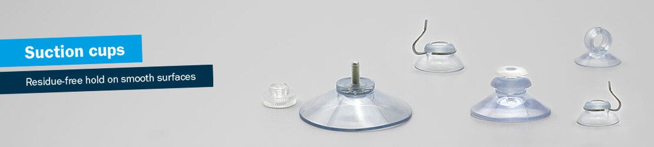 Suction cups can be used in many ways. A wide variety of materials can be attached to them. This makes them suitable for use in both the private and corporate area. Depending on the suction cup, heavy payloads of up to several kilograms can often be attached. Moreover, the transparent suction cups of SPRINTIS are hardly noticeable and adapt to any background color in the best possible way. Suction cups with hooks are mainly used to attach items such as towels, coats and others. They are also used to place posters in shop windows. If you choose a suction cup with screw top, you can use it as a brochure holder. Suction cups with slot are also useful since they can be used as a card holder. Small signs can be attached to them. Therefore, they are ideal for labeling shelves and warehouses. In addition, there are suction cups with screw top, suction cups with arrowhead and suction cups with ring. Especially in applications while cable routing, users should opt for a suction cup with ring.